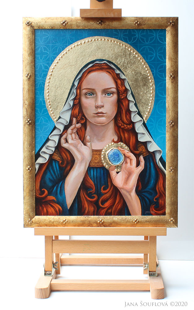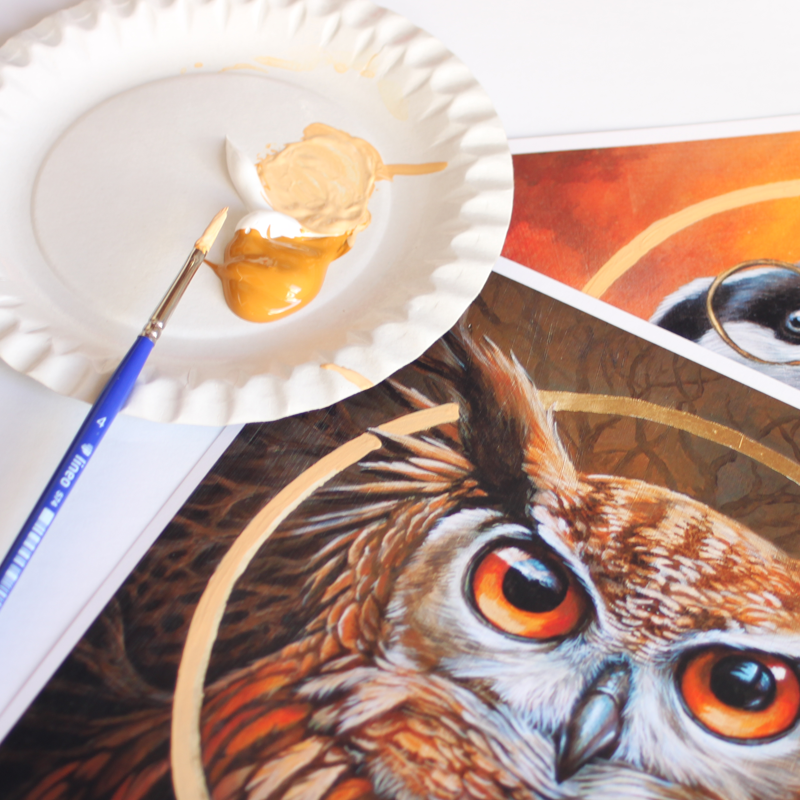Dříve jsem tisky zadávala do tiskárny a výsledek byl poměrně drahý s proměnlivou kvalitou. Od začátku roku 2021 už mám k dispozici vlastní techniku, a tak mám nad procesem kontrolu. Využívám dva druhy papírů, levnější epson a pak velmi krásné papíry z Natural line od Hahnemühle.Tisknu dva druhy. Fantasy ilustrace do velikosti A3+ a poté menší zlacené tisky mých obrazů. U zlacených tisků je k dispozici jen pár kousků. Jde totiž o poměrně pracný a zdlouhavý pracovní proces, a tak jsem schopna vyrobit maximálně 10-15 kousků za půl roku a vždy mi to zabere dva víkendy. Bývají zlacené pravým plátkovým zlatem.